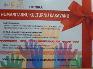 S obzirom na to da smo od Federalnog ministarstva kulture i sporta dobili sredstva za provođenje projekta ,,Humanitarna kulturna karavana”, u subotu 16. studenog u sklopu realizacije projekta posjetili smo Edukacijsko-rehabilitacijski centar ,,Duga” Novi Travnik, a potom i Zavod za zbrinjavanje mentalno invalidnih osoba Bakovići u Fojnici.